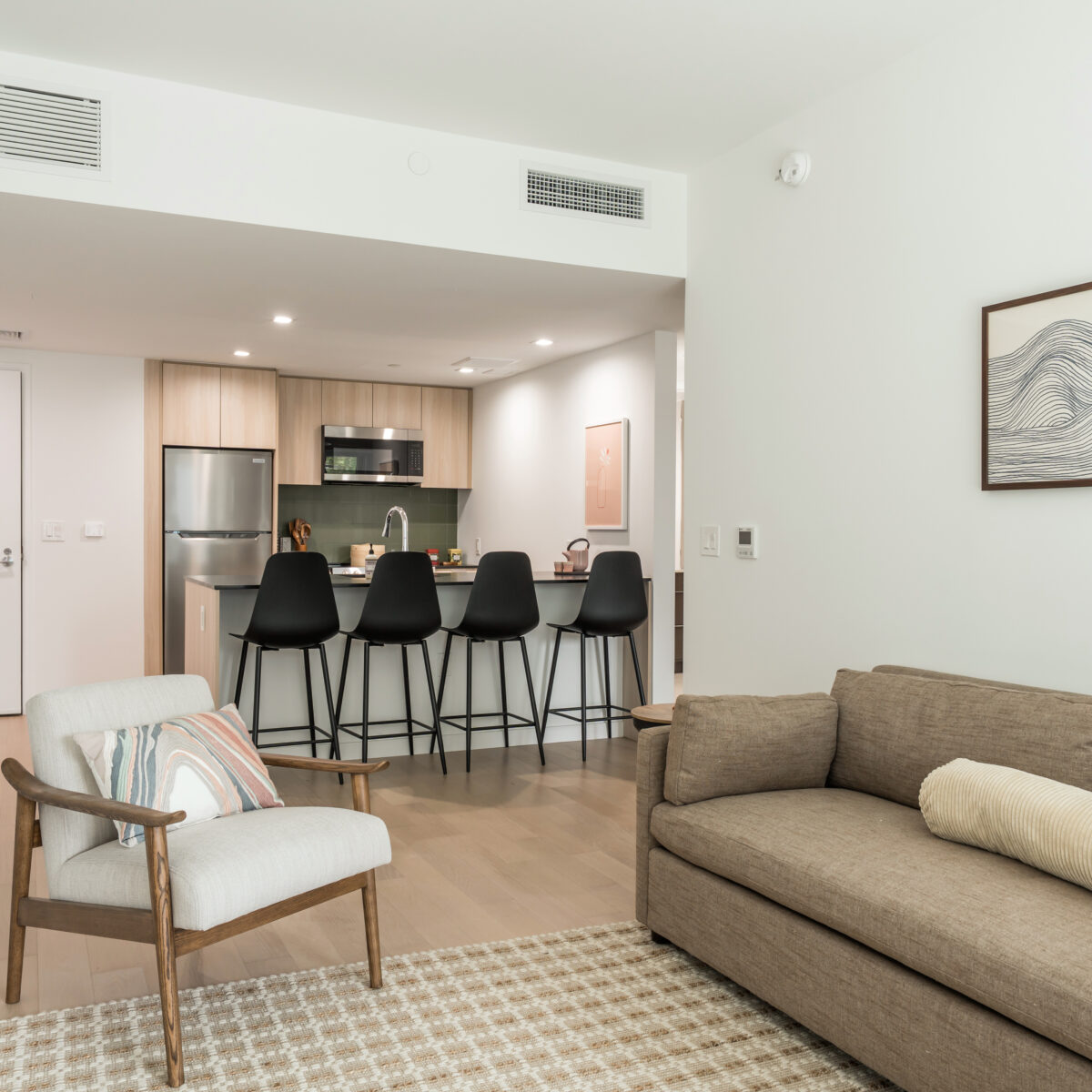 The MEP systems included high-efficiency condensing domestic hot water heater plants serving each tower, high-efficiency variable refrigerant volume (VRV) heat pump and heat recovery systems providing heating and cooling throughout the development, and energy recovery ventilation (ERV) systems serving base building areas, residential amenities, and common spaces. Additional systems included new electrical service and distribution, fire protection and standpipe systems, fire alarm systems, dedicated ventilation provisions for retail and supermarket spaces, and a CO/NO-controlled parking garage exhaust system utilizing jet vent fans. Rooftop mechanical equipment was coordinated with zoning-compliant screening and integrated with rooftop amenity areas.
